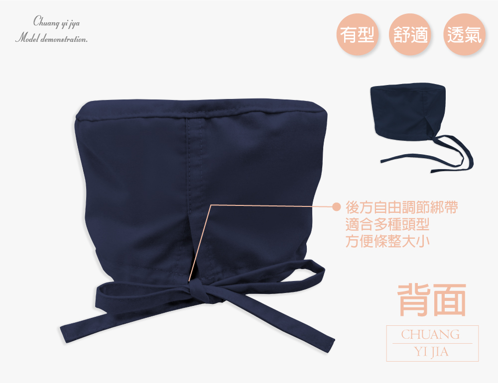 創e家團體服所生產手術帽, 衛生、清洗方便,可重覆使用,是醫療業專用之產品,方便配戴,可包起髮絲,避免髮絲和髮屑掉落。
