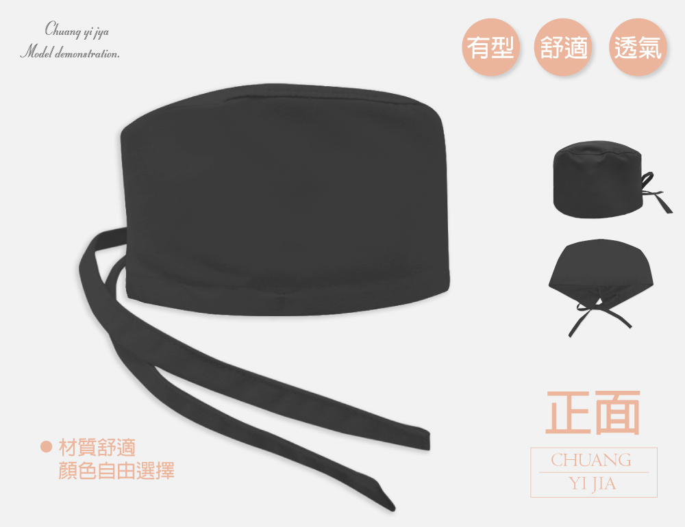 創e家團體服所生產手術帽, 衛生、清洗方便,可重覆使用,是醫療業專用之產品,方便配戴,可包起髮絲,避免髮絲和髮屑掉落。